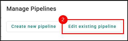 While on the Pipeline you'd like to edit, click the Pipeline icon to access editing options. Then, choose Edit existing pipeline. This will open the Edit Pipeline drawer panel which is similar to the Create New Pipeline drawer panel.
