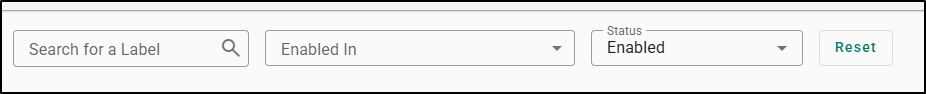 - Finally, you can filter labels by their status suing the Status dropdown and checking either Enabled or Disabled .