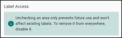 - In the Manage Labels page, sub-branch users they will see an info message saying, “This label was assigned by parent branch.”