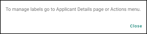 Since labels on the sidebar cannot be edited, a tooltip informs the user where to go: “To manage labels, go to Applicant Details page or the Actions menu.”