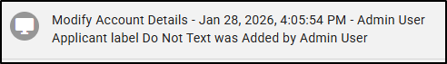 [Activity Notes/Applicant] label “[Label Name]” was [Added/Removed/Enabled/Disabled] by [User Name].