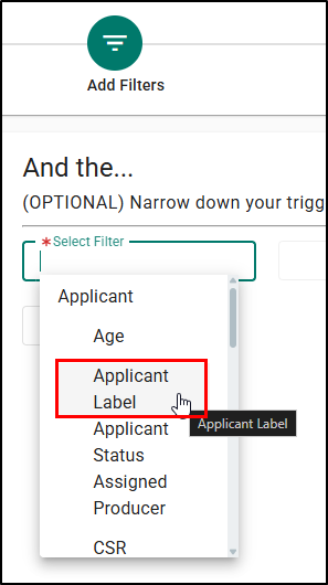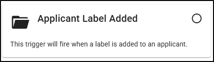 This trigger includes a required, preselected filter Applicant Label. You must select a label value from your agency’s Applicant Labels list to proceed. This filter cannot be removed. Once the trigger is configured, you can continue building the workflow using the existing steps—such as adding filters, defining actions, and completing setup—just as you do today.