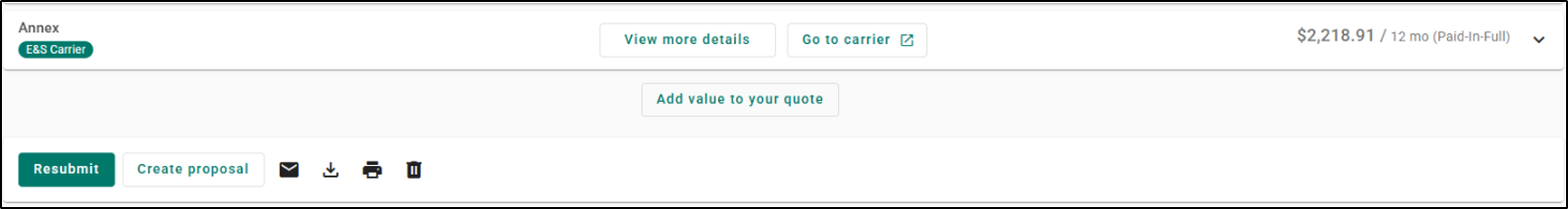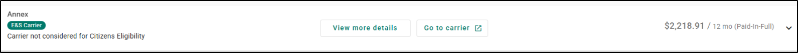 If you choose to rate in the Clearinghouse and you do not select Citizens as a carrier to rate with, then you will only see the chip indicating that the carrier returning the quote is an E&S carrier.