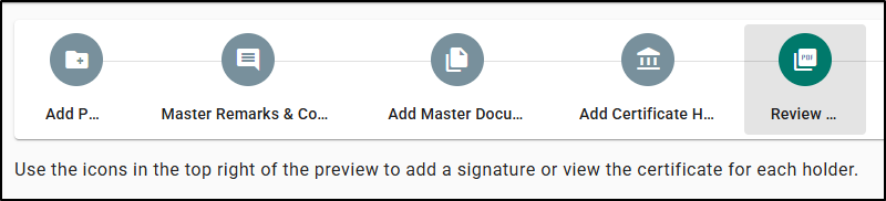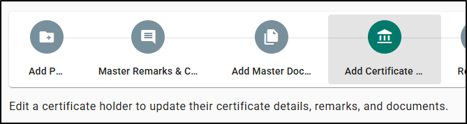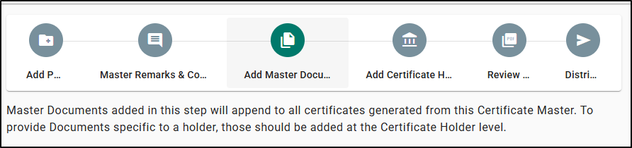 - Add Master Documents clarifies that these documents are attached to all certificates for the master, and that holder specific documents should be added from the holder.
